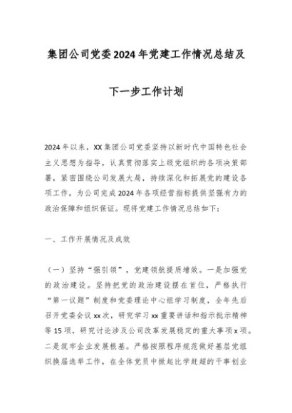 / 集团公司党委2024年党建工作情况总结及下一步工作计划