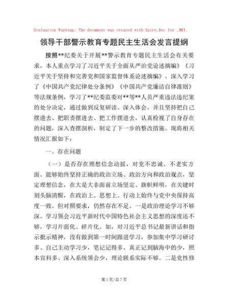 / 领导干部警示教育专题民主生活会发言提纲
