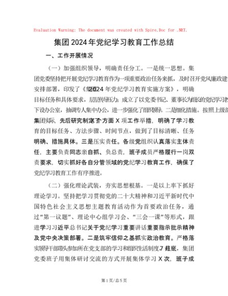 / 集团2024年党纪学习教育工作总结