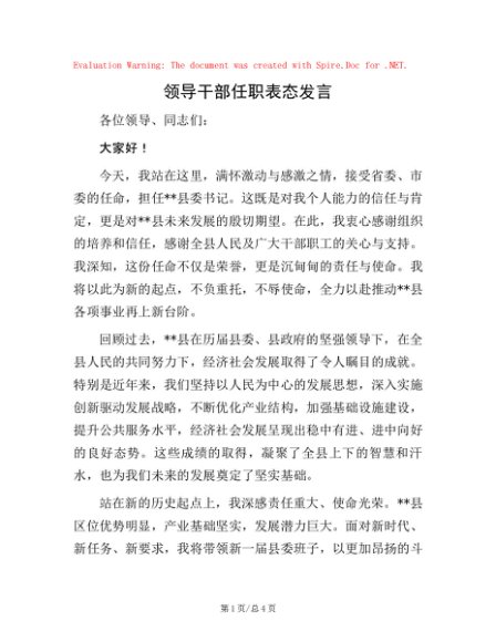 / 领导干部任职表态发言