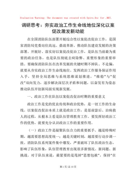 / 调研思考:夯实政治工作生命线地位深化以案促改激发新动能