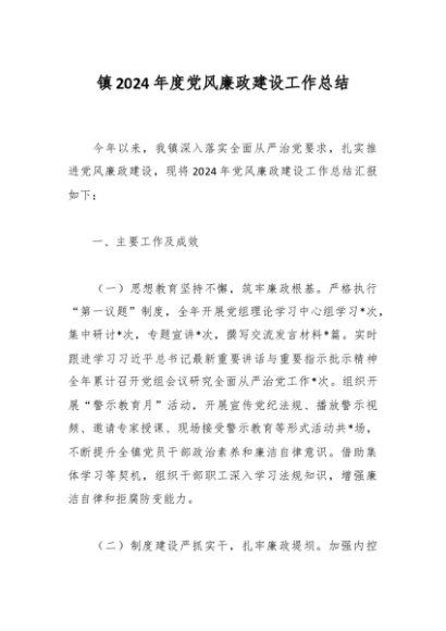/ 镇2024年度党风廉政建设工作总结