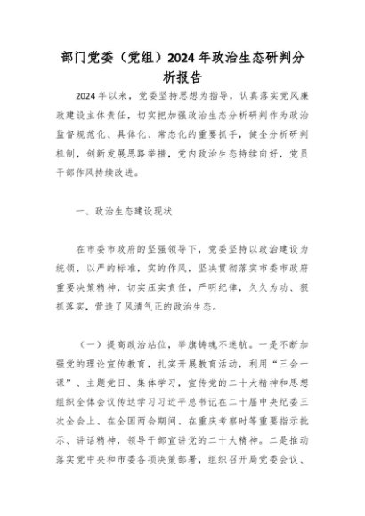 / 部门党委(党组)2024年政治生态研判分析报告