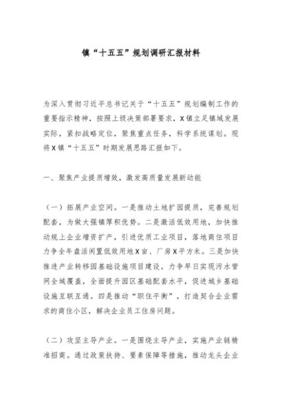/ 镇“十五五”规划调研汇报材料
