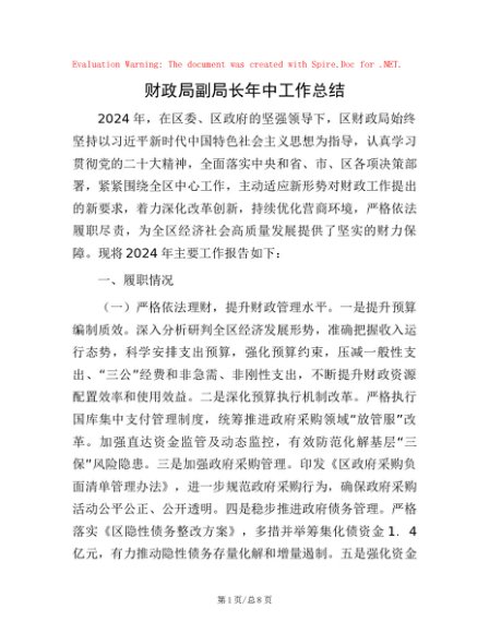 / 财政局副局长年中工作总结