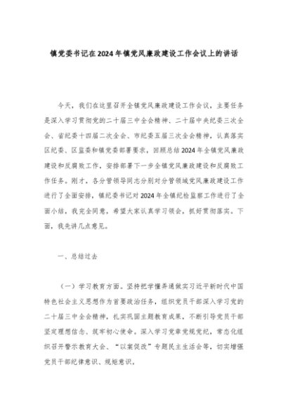 / 镇党委书记在2024年镇党风廉政建设工作会议上的讲话
