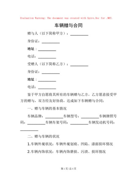 / 车辆赠与合同