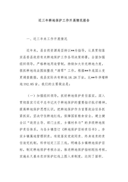 / 近三年耕地保护工作开展情况报告