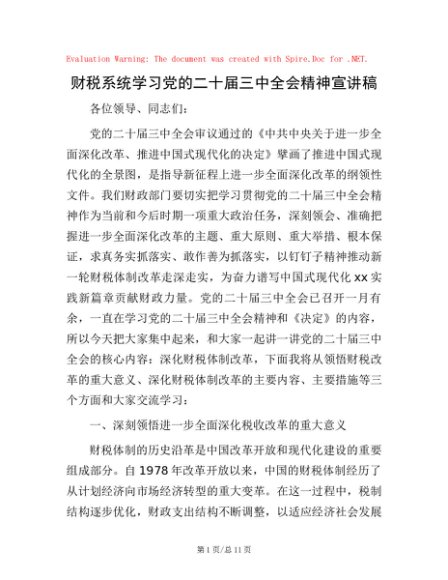 / 财税系统学习党的二十届三中全会精神宣讲稿