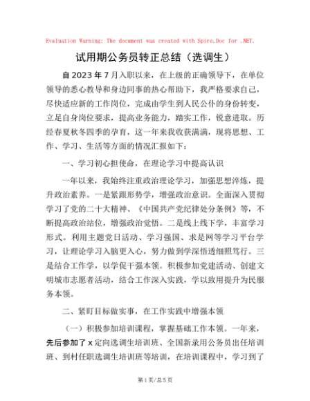 / 试用期公务员转正总结(选调生)