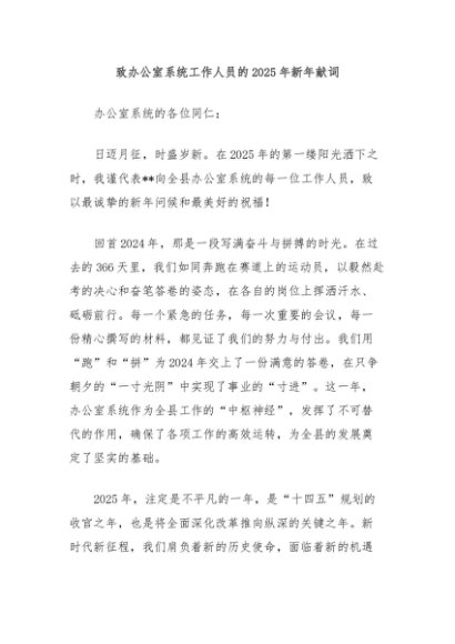 / 致办公室系统工作人员的2025年新年献词