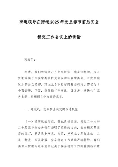 / 街道领导在街道2025年元旦春节前后安全稳定工作会议上的讲话