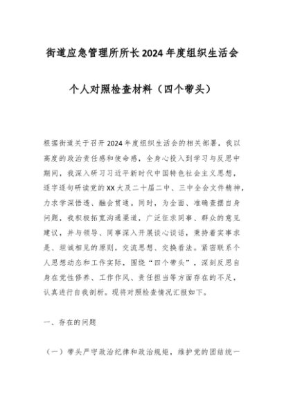 / 街道应急管理所所长2024年度组织生活会个人对照检查材料(四个带头)
