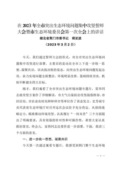 / 胡亚波:在2023年全市突出生态环境问题集中攻坚誓师大会