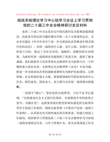 统战系统理论学习中心组学习会议上学习贯彻党的二十届三中全会精神研讨发言材料