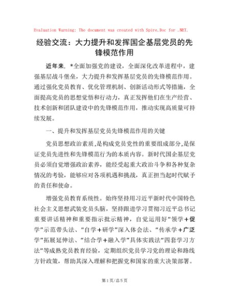 / 经验交流:大力提升和发挥国企基层党员的先锋模范作用
