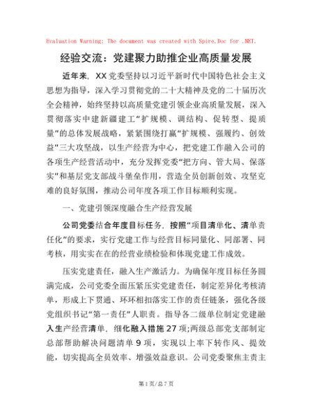 / 经验交流:党建聚力助推企业高质量发展