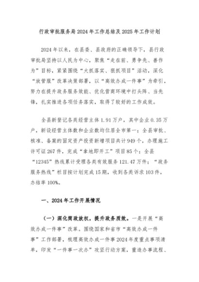 / 行政审批服务局2024年工作总结及2025年工作计划