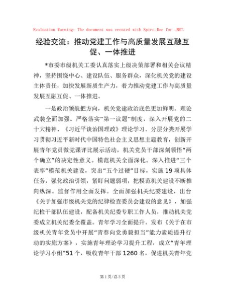 经验交流:推动党建工作与高质量发展互融互促、一体推进