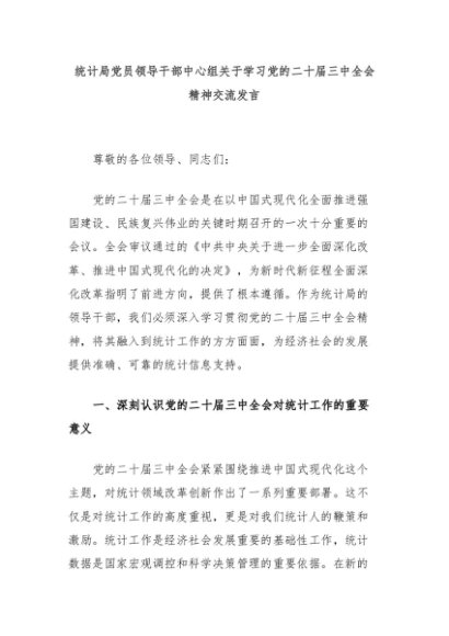 / 统计局党员领导干部中心组关于学习党的二十届三中全会精神交流发言