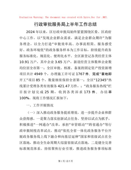 / 行政审批服务局上半年工作总结