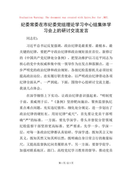 / 纪委常委在市纪委党组理论学习中心组集体学习会上的研讨交流发言