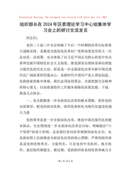 / 组织部长在2024年区委理论学习中心组集体学习会上的研讨交流发言