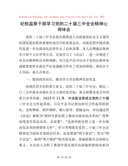 / 纪检监察干部学习党的二十届三中全会精神心得体会
