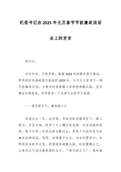 / 纪委书记在2025年元旦春节节前廉政谈话会上的发言