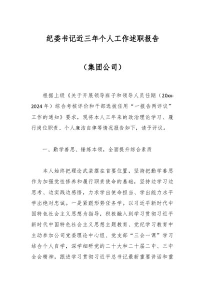 / 纪委书记近三年个人工作述职报告(集团公司)