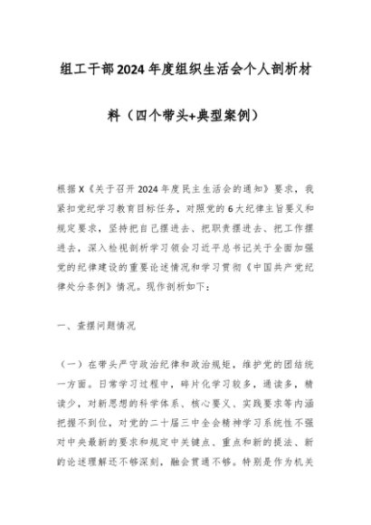 / 组工干部2024年度组织生活会个人剖析材料(四个带头+典型案例)