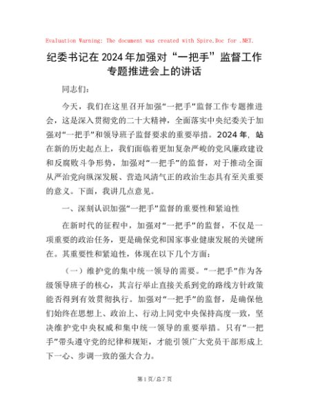 / 纪委书记在2024年加强对“一把手”监督工作专题推进会上的讲话