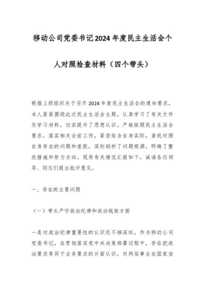 / 移动公司党委书记2024年度民主生活会个人对照检查材料(四个带头)