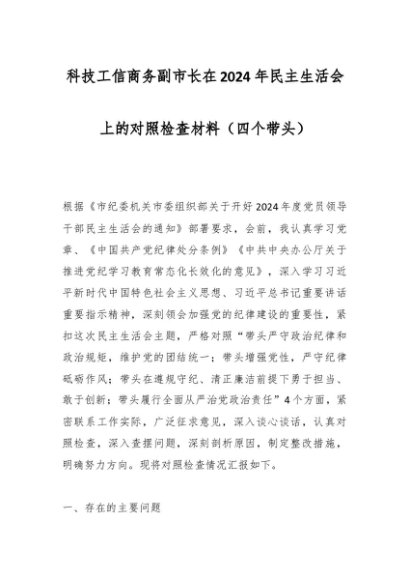 / 科技工信商务副市长在2024年民主生活会上的对照检查材料(四个带头)