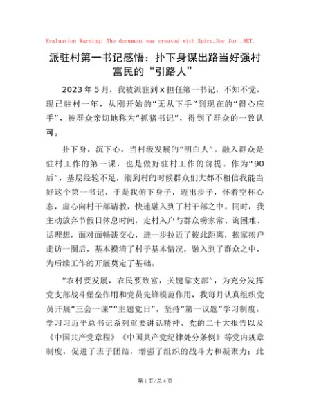 / 派驻村第一书记感悟:扑下身谋出路 当好强村富民的“引路人”