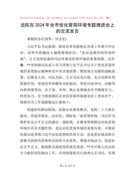 / 法院在2024年全市优化营商环境专题推进会上的交流发言