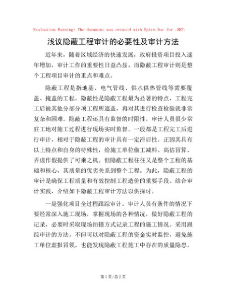 / 浅议隐蔽工程审计的必要性及审计方法