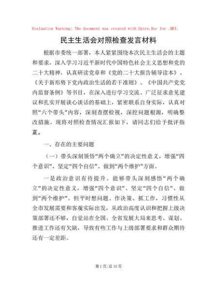 / 民主生活会对照检查发言材料