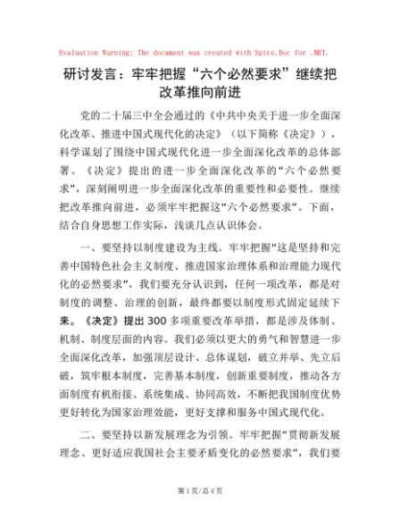 / 研讨发言:牢牢把握“六个必然要求” 继续把改革推向前进