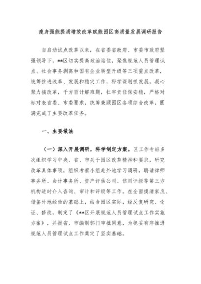 瘦身强能提质增效改革赋能园区高质量发展调研报告