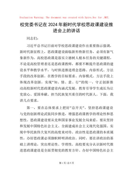 / 校党委书记在2024年新时代学校思政课建设推进会上的讲话
