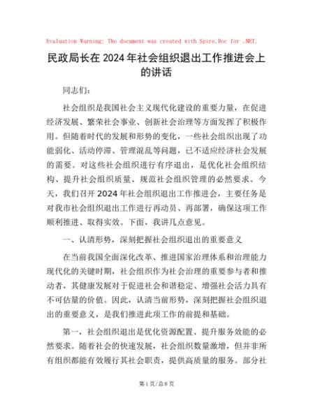 / 民政局长在2024年社会组织退出工作推进会上的讲话