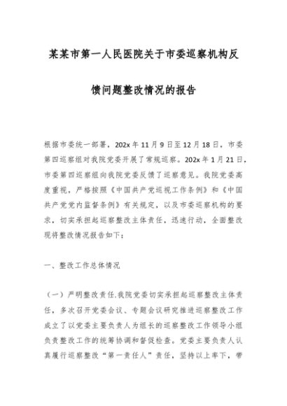 / 某某市第一人民医院关于市委巡察机构反馈问题整改情况的报告