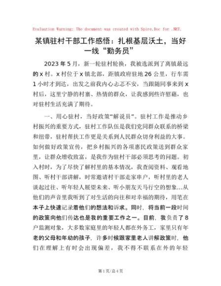 / 某镇驻村干部工作感悟:扎根基层沃土,当好一线“勤务员”