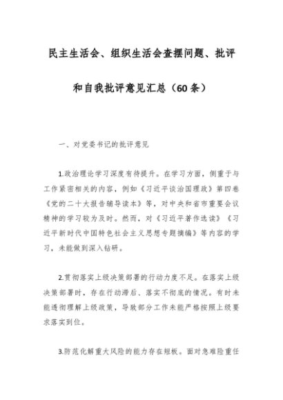 / 民主生活会、组织生活会查摆问题、批评和自我批评意见汇总(60条)