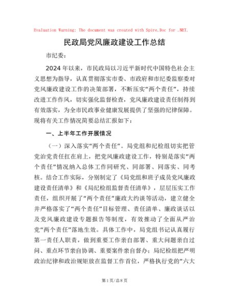 / 民政局党风廉政建设工作总结