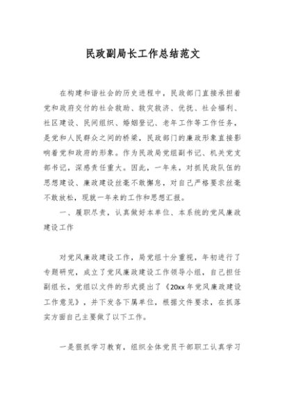 / 民政副局长工作总结范文
