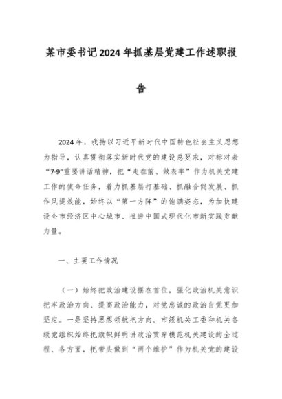 / 某市委书记2024年抓基层党建工作述职报告