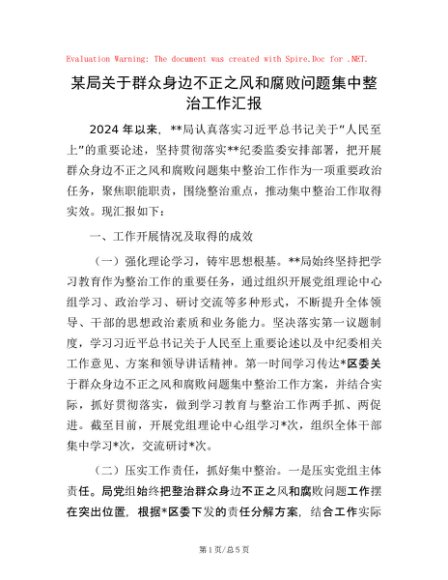 / 某局关于群众身边不正之风和腐败问题集中整治工作汇报