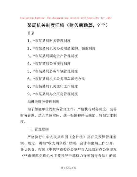 某局机关制度汇编(财务后勤篇,9个)